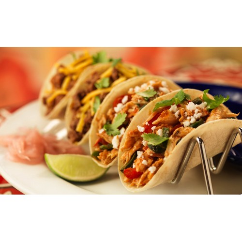 • Choice of spicy ground beef or shredded chicken.